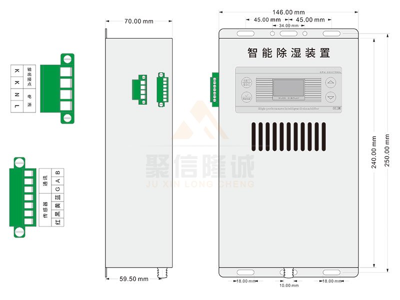10、型號帶“T”的具有加熱功能,當(dāng)檢測到箱體環(huán)境溫度低時,除濕裝置內(nèi)部的風(fēng)機和外部加熱器啟動工作。