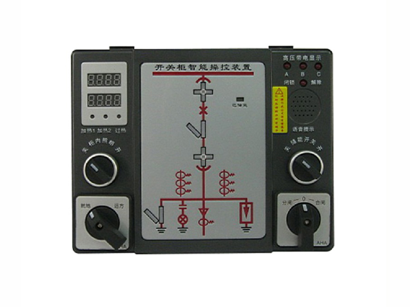 智能操控裝置具有一次回路模擬圖及開關(guān)狀態(tài)指示,高壓帶電顯示,自動(dòng)溫濕度控制,人體感應(yīng)自動(dòng)照明,語音提示,電參數(shù)測(cè)量及RS485通訊接口等眾多功能,集操作、顯示于一體。